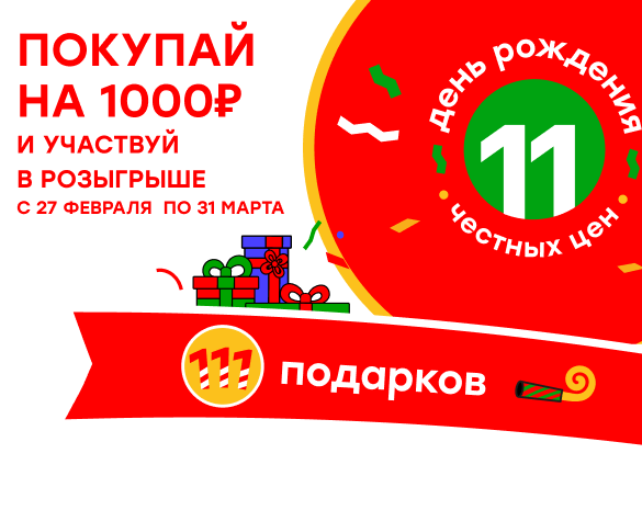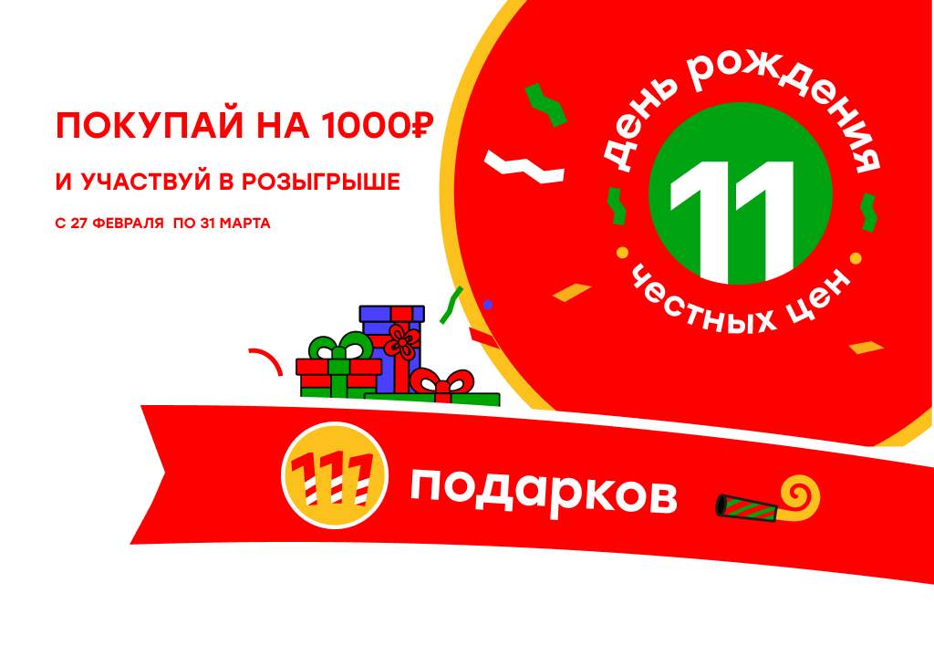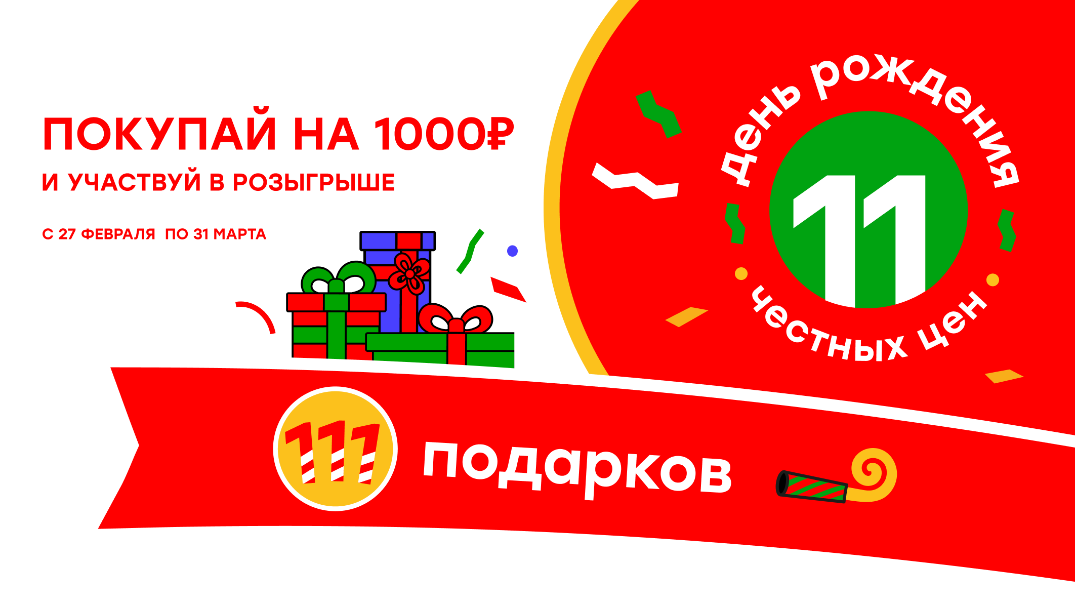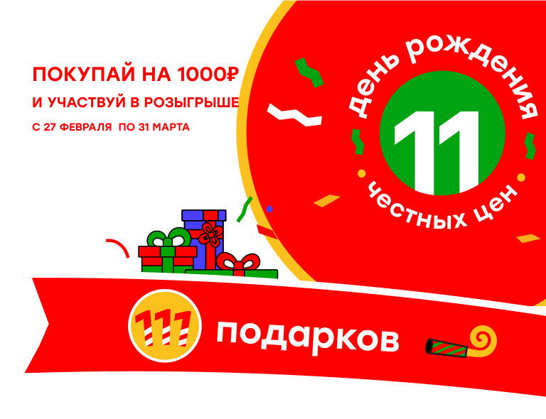 Все участники получают гарантированные подарки от Партнера Акции «День рождения честных цен» вместе с купоном с 27 февраля 2026 года по 31 марта 2026 года включительно: