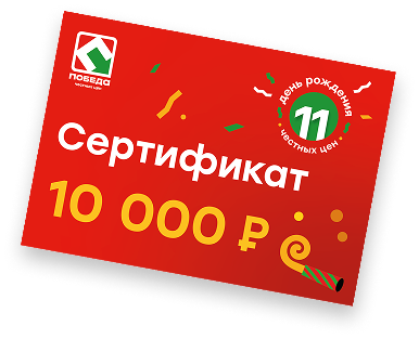 Сертификат на покупки в магазин ПОБЕДА на сумму 10 000 ₽