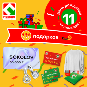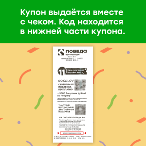 Купоны Акции «День рождения честных цен» выдаются только в магазинах ПОБЕДА в рабочее время магазинов.